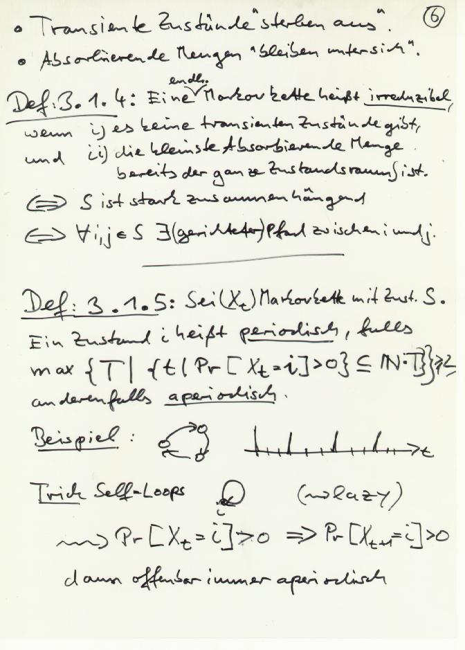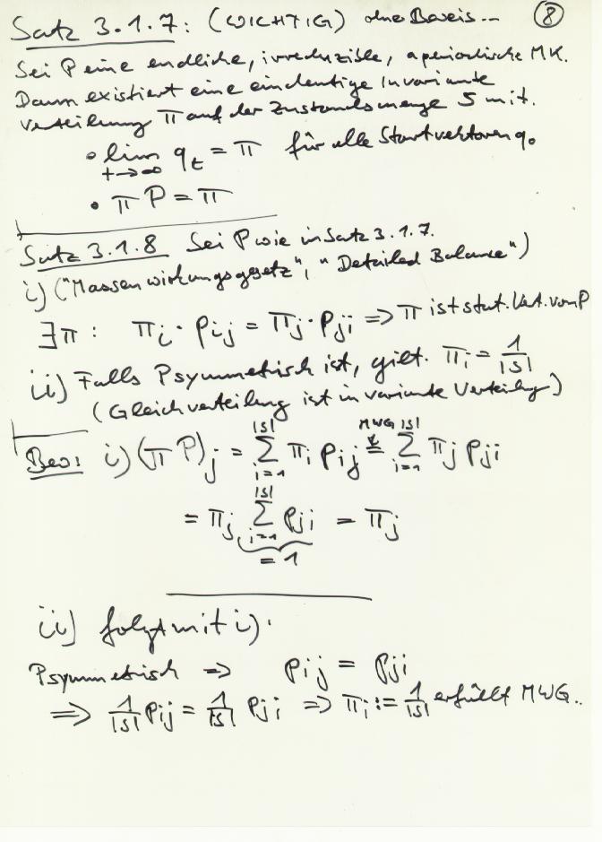 Folie 7 Bem.: Die invariante Verteilung $\pi$ in Def. 3.1.6 mu"s nat"urlich $\pi=\pi P$ erf"ullen.